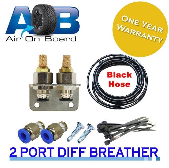 AIR ON BOARD DIFF BREATHER KIT 100 UNIVERSAL 2 PORT BLACK HOSE