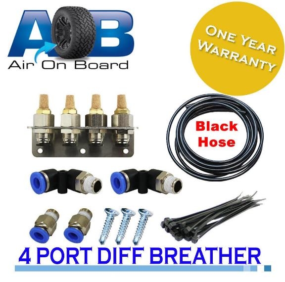 AIR ON BOARD DIFF BREATHER KIT 101 UNIVERSAL 4 PORT BLACK HOSE