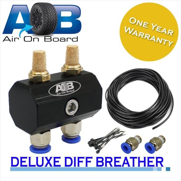 AIR ON BOARD DIFF BREATHER DELUXE KIT 110 UNIVERSAL 2 PORT BLACK HOSE