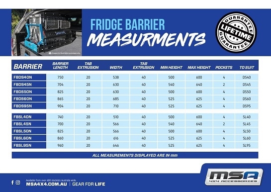 The new MSA 4X4 Fridge Barrier Range is tough, durable