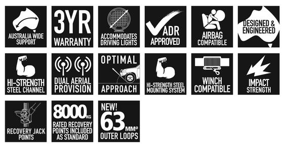 | Recovery: | 8000kg Rated Recovery Points, Strengthened Hi Lift Jacking Points |